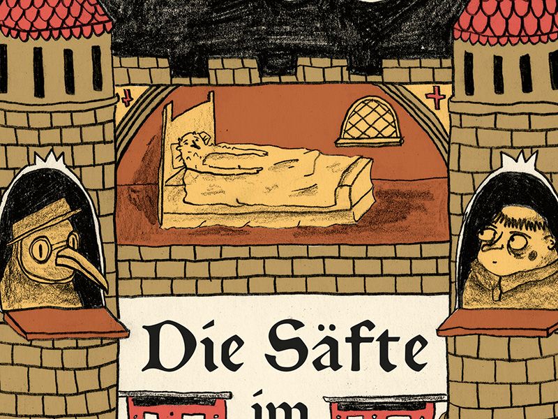 Von der Vier-Säfte-Lehre, über aufgelegte Egel und Igelbrühe nicht immer zum Wohlbefinden der Kranken. Der Comic zeigt unterschiedliche Heilmethoden und Ansätze aus der Sicht von Medizin, Kirche, Magie und Ernährung während des Mittelalters.
