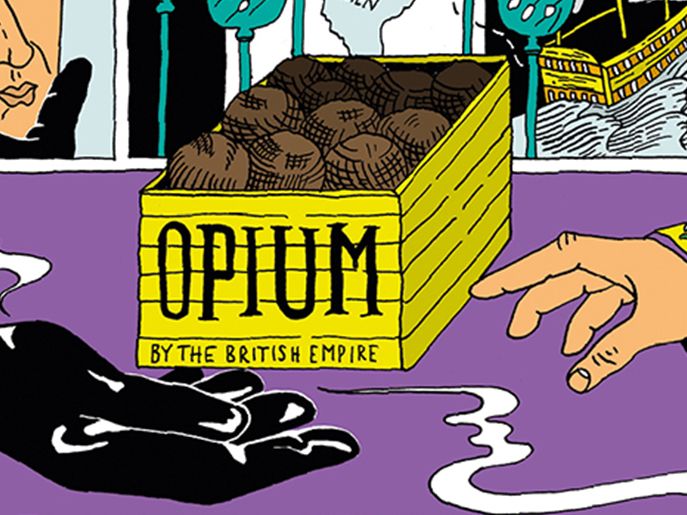 Der Comic nimmt die Leser:innen mit auf eine Reise durch die Geschichte von Opium: – ritueller Gebrauch in der Jungsteinzeit, die strategische Instrumentalisierung im Kolonialismus bis hin zur industriellen Produktion und Vermarktung im 20. Jahrhundert. Opium ist die Geschichte von Schmerz, Sucht und Macht.