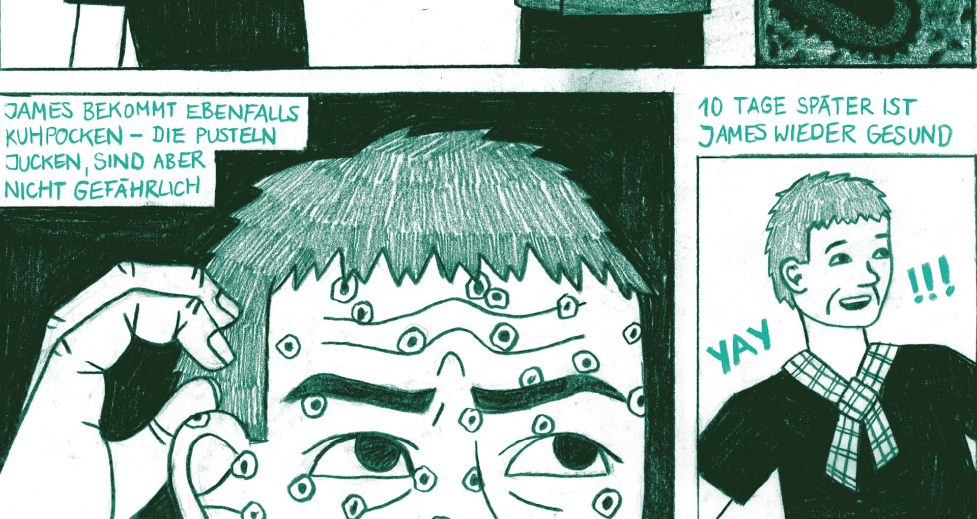 Der Comic erzählt die Geschichte der Pockenprävention – von frühen Variolationspraktiken über Edward Jenners bahnbrechende Vakzination bis hin zur Entwicklung moderner Impfstoffe. Er zeigt, wie medizinische Beobachtungen, Experimente und Forschung den Grundstein für die heutige Immunisierung legten.